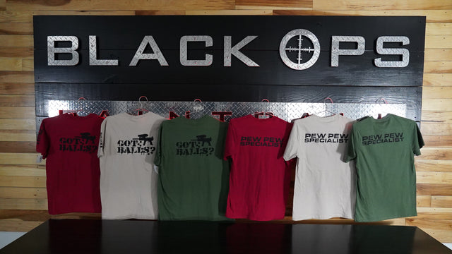 The paintball fan favorite Got Balls and the airsoft fan favorite Pew Pew Specialist Tshirts are back with a better softer material.