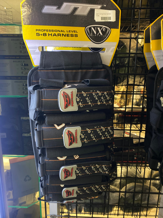 Professional level 5+8 harness. Features ultralight construction elasticated potholders extra pod loops varied pod pocket-size expandability rubberized great flex belt rap comfort foam cushion support back and lateral panels TPR easy pull fasten and release tab ventilated max air mesh system