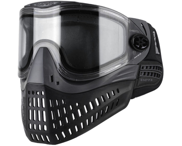 Check out the all new Empire E-Flex Paintball mask. If you are looking for a combination of two of the hottest paintball masks on the market then the E-Flex is for you.The bottoms of the Empire E-Flex paintball mask detach and are completely compatible with regular Flex skirts and Specta frames! This means plenty of customizing for everyone.The Empire E-Flex Paintball mask includes the Empire E-Vents quick change lens system, beefed up the ear pieces from the original Proflex, reshaped Proflex bottom to hug the face more and decrease the side protruding. The Empire E-Flex foam is from the Spectra so it's the most comfortable foam ever.Note: The stock lens of the Empire E-Flex is clear.
