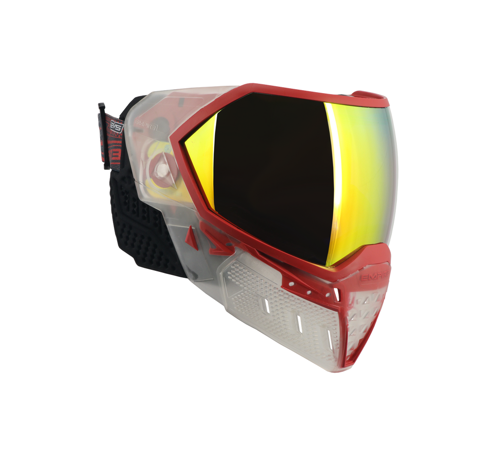 Empire has combined cutting edge. design with input from our vastly experienced players to create the unique EVS paintball mask. Our goggle is at the forefront of innovative design and unlike any mask in paintball, where the wide-view spherical lens is seamlessly part of the overall goggle. EVS is the apex of technology, appearance, protection and breathability, all-in-one serious kickass goggle!