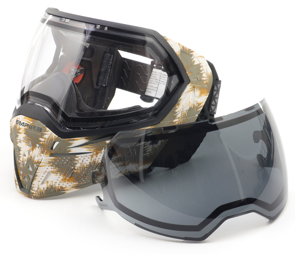 Empire has combined cutting edge. design with input from our vastly experienced players to create the unique EVS paintball mask. Our goggle is at the forefront of innovative design and unlike any mask in paintball, where the wide-view spherical lens is seamlessly part of the overall goggle. EVS is the apex of technology, appearance, protection and breathability, all-in-one serious kickass goggle!