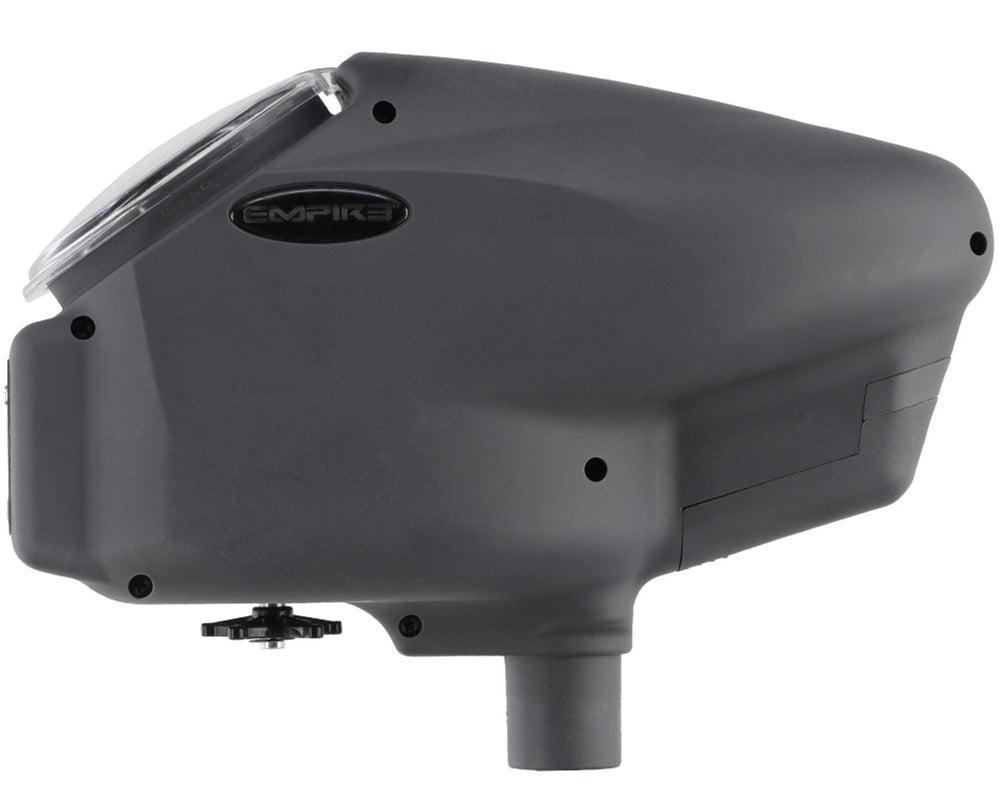 The Empire Halo Too is the best performing paintball loader for the money. With a cost that is less than half the price of some top paintball loaders, the outstanding performance of this paintball loader will make this an easy choice for most players. The ultra-quiet belt drive will force-feed 20+ balls-per-second, allowing your marker to throw plenty of paint at your opponent. The Freeway™ Anti-Jam keeps the paintball loader from jamming and breaking paintballs, so you'll still be shooting while others are busy scraping paint. The new, matte black poly-carbonate shell can withstand any hit and can easily fit 180 paintballs. The on-board computer directs the sound-activated feeding and allows you to program the Motor Speed, Microphone Sensitivity and Feed Stack monitoring. But of course, with a name like Halo, you knew you'd be getting the ultimate in paintball loader technology. Put this loader on your marker and Invert will make a believer out of you Too. The new V2 version comes with the Rip drive kit pre-installed and has an upgraded shell with a tool-less battery door.