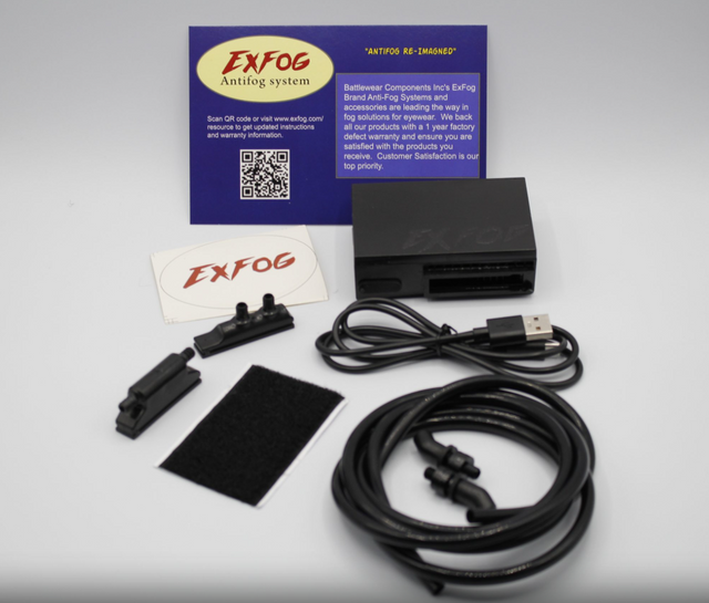 With the essential kit, you get an adhesive hook and loop system for affixing the ExFog Antifog System unit directly to helmets or other surfaces that will adhere to the hook and loop. This essential kit option is ideal for customers who will be using the anti-fog system on hard hats, tactical helmets, biking helmets, and other headgear that does not require a headband or T-band.