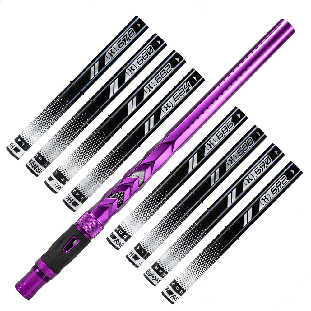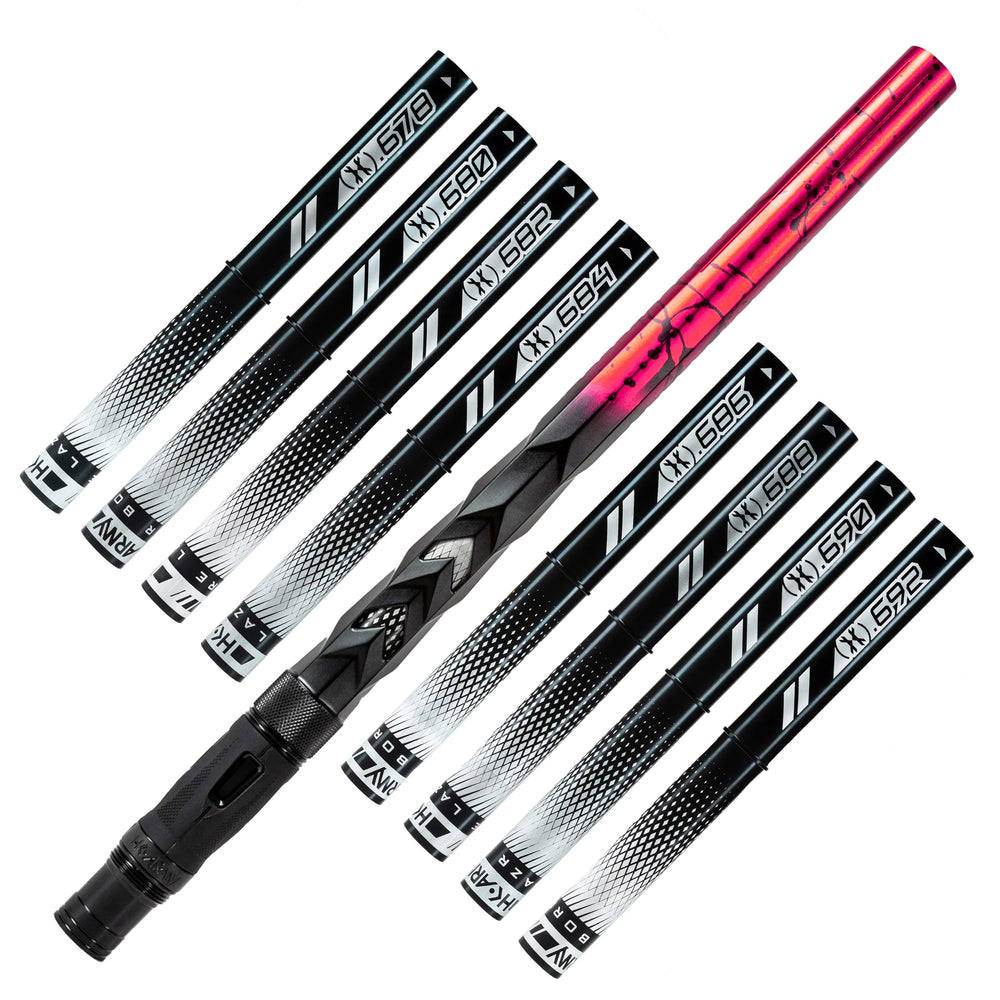 The LAZR Elite "Fossil" Barrel Kit comes complete with 8 Barrel Bore Inserts, an Elite Barrel Tip, Bore Sizer and 4 interchangeable Accent Grips. The LAZR Elite Barrel Kit is packaged with an HK Army EXO Barrel Protective Case.