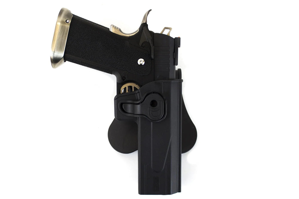 La serie de fundas NUPROL está hecha de polímero negro duradero de grado policial y está diseñada específicamente para usar con pistolas WE que no se ajustan a fundas estándar.